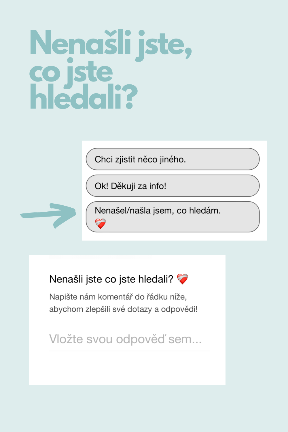 Vaše zpětná vazba je pro nás velmi důležitá a pomůže nám stránky vylepšit. V případě nezodpovězené otázky nám neváhejte zanechat svou e-mailovou adresu a my vás budeme kontaktovat. Pevně věříme, že tato funkce přispěje k tomu, abyste co nejrychleji dohledali informace, které jsou pro vás zásadní.