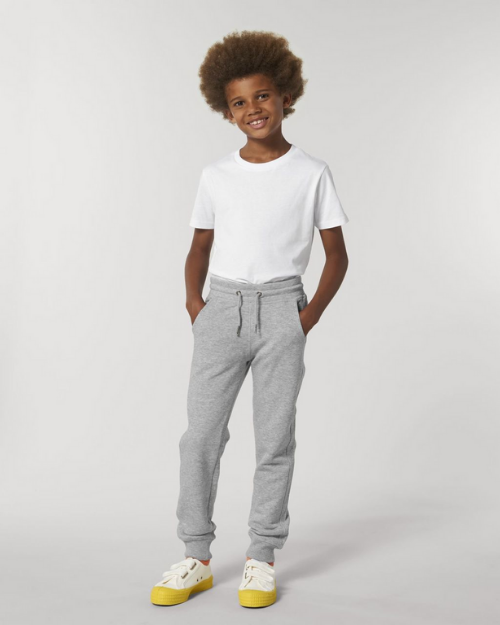 - Stanley/Stella Mini Shake (Heather Grey): sizes 3-14 years – 85% organic cotton, 15% recycled polyester (GOTS, Oeko-Tex, Fair Wear)
