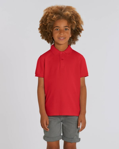 - POLO T-SHIRT Stanley/Stella Mini Sprinter (Red): sizes 3-14 years – 100% organic cotton (GOTS, Oeko-Tex, Fair Wear)