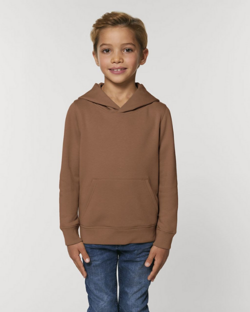 - Stanley/Stella Mini Cruiser (Caramel): sizes 3-14 years – 85% organic cotton, 15% recycled polyester (GOTS, Oeko-Tex, Fair Wear)