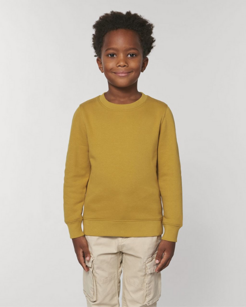 - Stanley/Stella Mini Changer (Ochre): sizes 3-14 years – 85% organic cotton, 15% recycled polyester (GOTS, Oeko-Tex, Fair Wear)