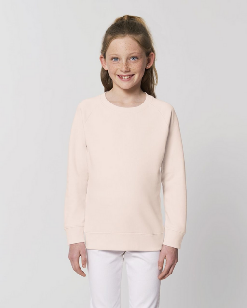 - Stanley/Stella Mini Runner (Cream Heather Pink): sizes 3-14 years – 85% organic cotton, 15% recycled polyester (GOTS, Oeko-Tex, Fair Wear)