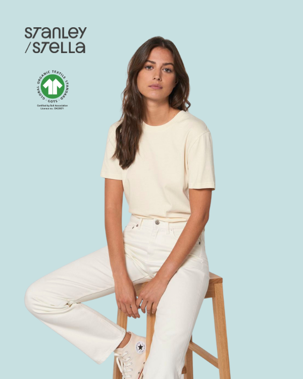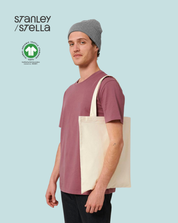 The 100% organic undyed cotton textile from Stanley/Stella is produced in a very environmentally friendly way and in accordance with the strict ecological and ethical requirements of the GOTS certification. Simply remove the inner label made from recycled polyester and the textile will biodegrade in the ground.