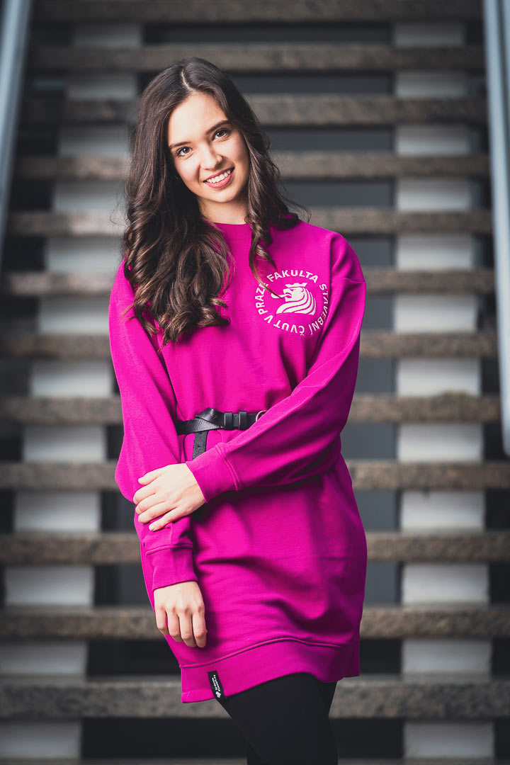 Kateřina: We had sweatshirt dresses, sweatshirts and hats made. It was a completely different concept and design than the promo textile we previously offered, so we waited anxiously for the reactions of students and employees. But from the first moment there were enthusiastic responses - when we started wearing the new collection, people stopped us in the corridors of the faculty and asked where they could buy such sweatshirts. Students now buy the new merch a lot and praise how comfortable it is. They even wear it for exams for good luck!