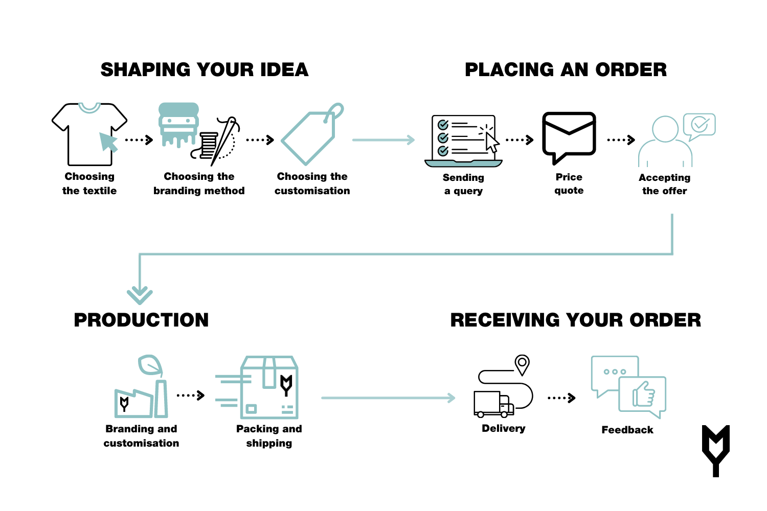 There are few steps that need to be completed before you unpack your order with your new merch. We will show you what the whole process from order to delivery of a product looks like and how we can make it smoother for each other.