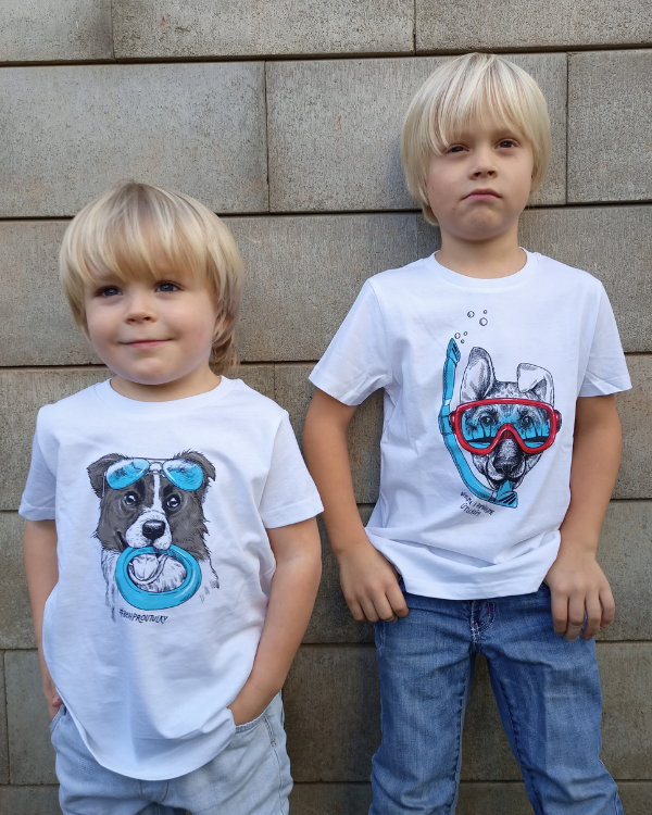 The first motifs were a bulldog and a retriever. We wanted to have one t-shirt for girls and one for boys. But then came a request from owners of wolfdogs, beagles, dachshunds and others to do just their breed. Today we have 18 designs and the new one is the Yorkshire. And about those ideas - we always try to ask the owners how their dogs behave, what is their characteristic, what is typical for them. For example, my friend told me how her wolfdog chews her running shoes, so we painted the wolfdog that way. 😊
