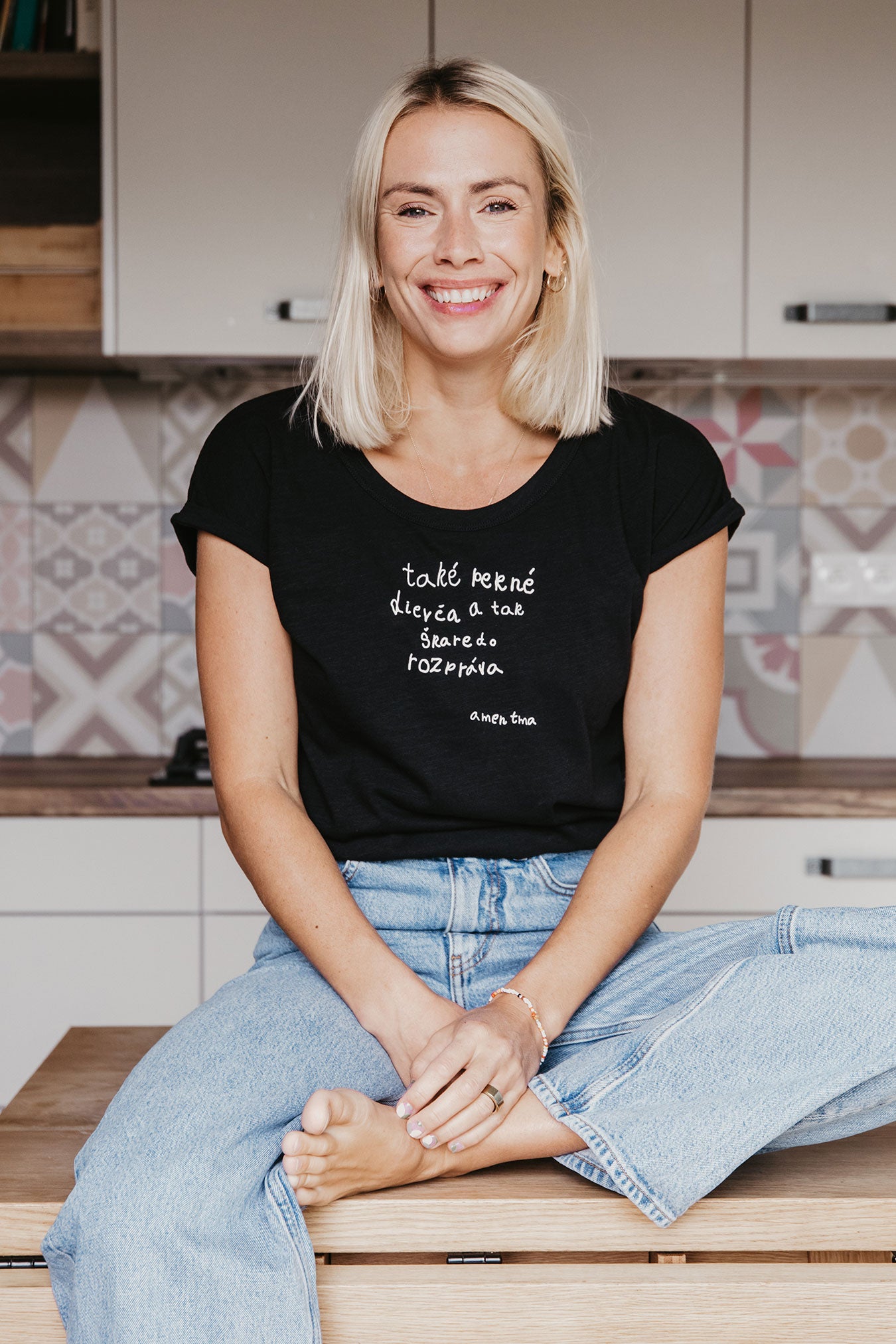 Kristína Tormová is a Slovak actress, presenter, writer and, last but not least, a successful businesswoman. We adore her funny t-shirt designs, and we also proudly produce those belonging to the sustainable GOTS collection! We talked to Kristína about her journey of founding her own brand, her plans for the future and how she is (un)satisfied with us!