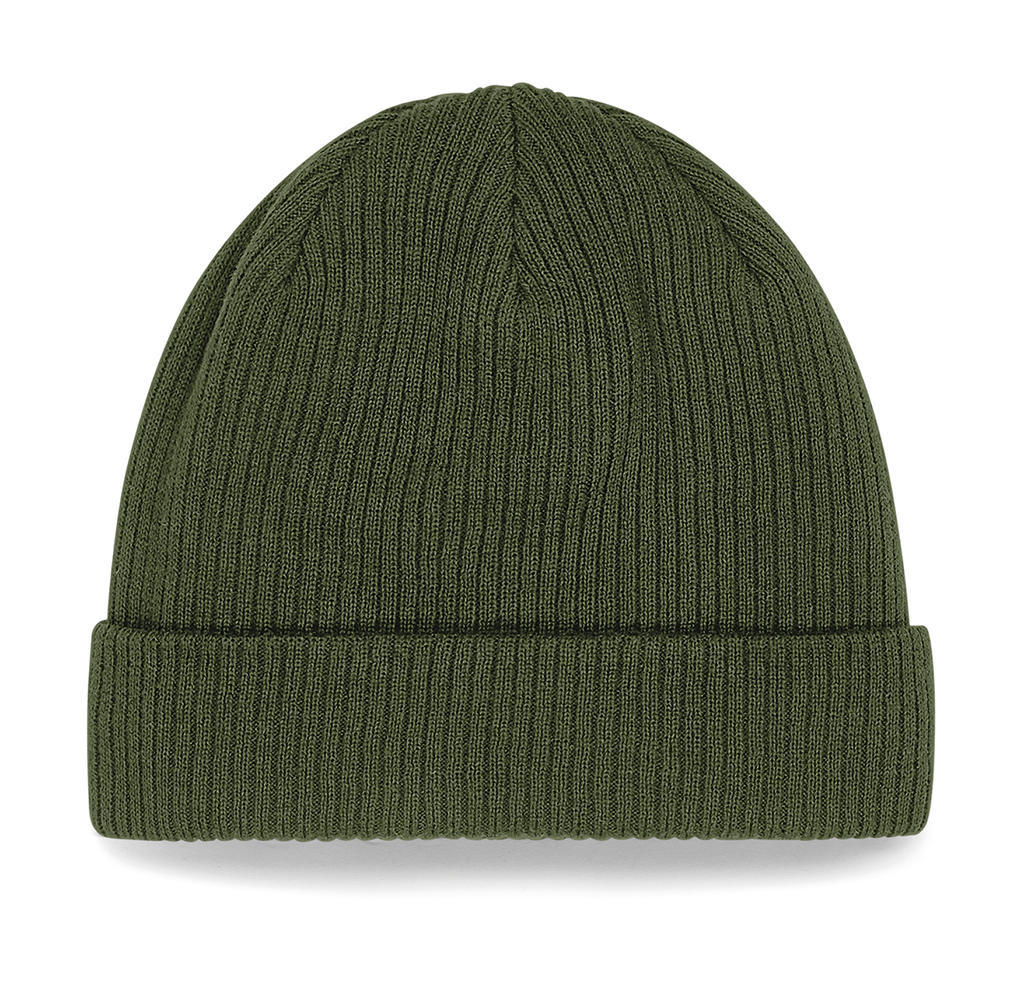 - Beechfield Beanie (olive green): 100% organic cotton – OCS100 certified